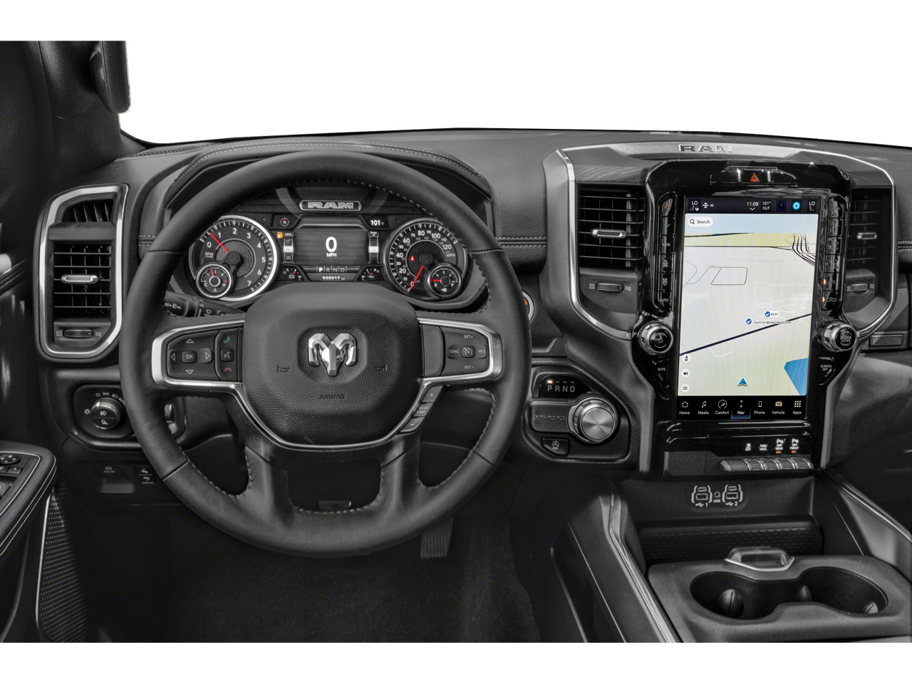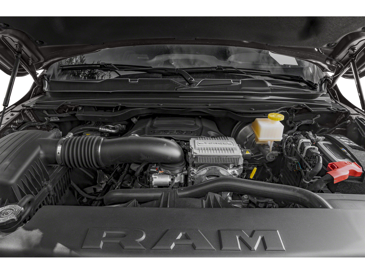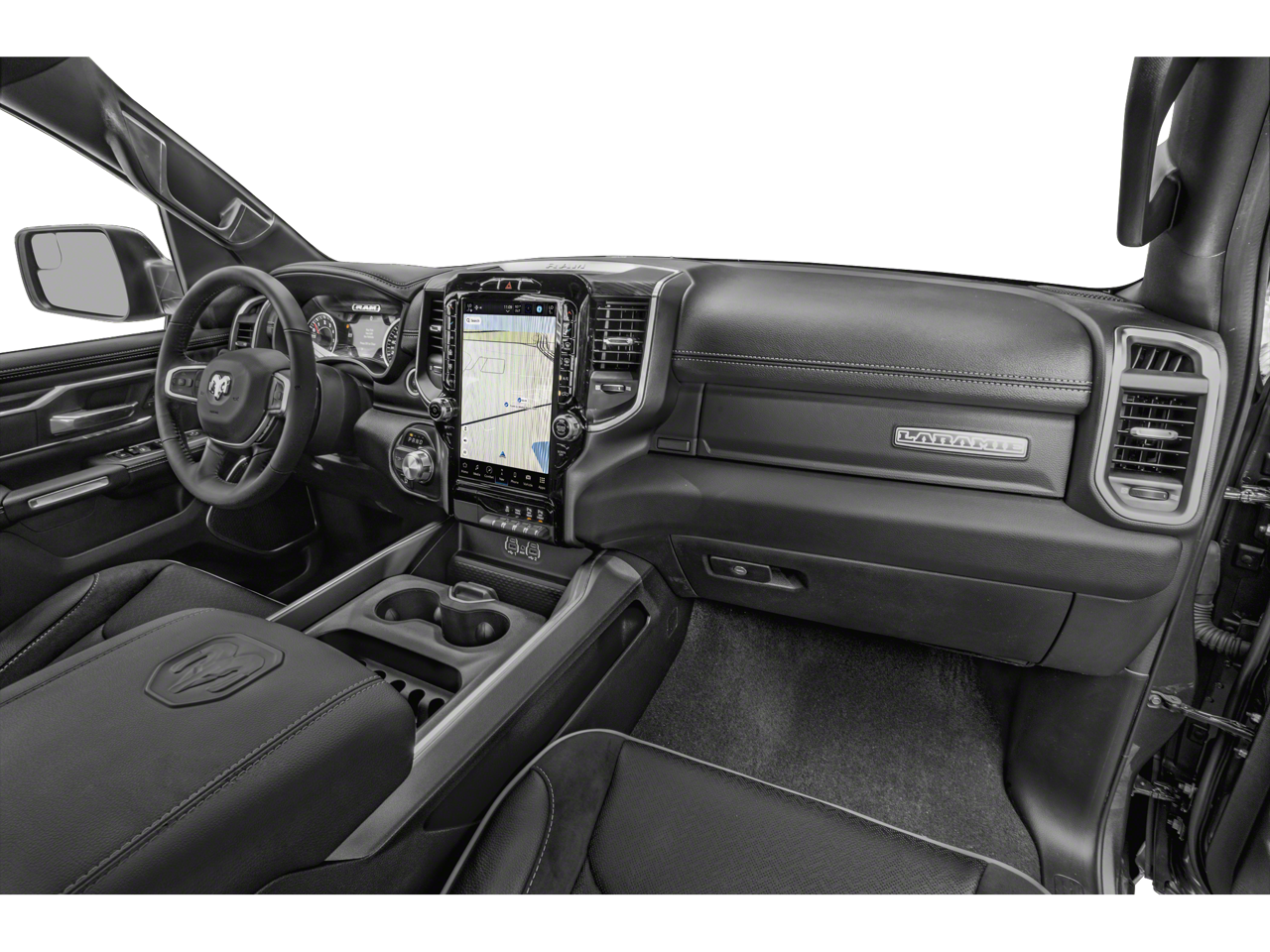 ENGINE: 5.7L V8 HEMI MDS VVT ETORQUE Active Noise Control System, Heavy Duty Engine Cooling, Passive Tuned Mass Damper, GVWR: 7,100 lbs, Dual Rear Exhaust w/Bright Tips, HEMI Badge, 23 Gallon Fuel Tank, 18" Aluminum Spare Wheel, LARAMIE LEVEL 1 EQUIPMENT GROUP Rear Window Defroster, Blind Spot & Cross Path Detection, Rain Sensitive Windshield Wipers, ParkSense Front/Rear Park Assist w/Stop, Rear Power Sliding Window, 12" Touchscreen Display, Front LED Fog Lamps, LED Reflector Headlamps, Foam Bottle Insert (Door Trim Panel), Radio: Uconnect 5 Nav w/12.0" Display, Remote Tailgate Release, Auto High Beam Headlamp Control, Electric Shift On Demand Transfer Case, Front Door Accent Lighting, 2nd Row In Floor Storage Bins, Rear Door Accent Lighting, WHEELS: 20" X 9" PREMIUM PAINT/POLISHED Tires: 275/55R20 OWL All Season, BLACK, LEATHER TRIMMED BUCKET SEATS Bucket Seats, Center Console Parts Module, Full Length Upgraded Floor Console, ANTI-SPIN DIFFERENTIAL REAR AXLE, CLASS IV RECEIVER HITCH, TRANSMISSION: 8-SPEED AUTOMATIC (8HP75).